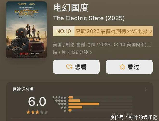 Netflix上映的科幻大片《电幻国度》(The Electric State)遭遇票房滑铁卢。